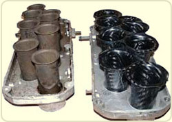 On the left you can see the original trumpets as fitted to all EFi V8's for the past 20 years. It comes as no surprise that reducing the Air flow restriction into the engine has substantial additional power advantages. It also proves how little has been done to achieve superior power levels for these more modern engines, even for the larger capacity variants. |