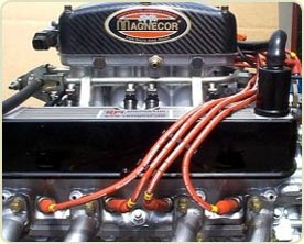 Magnecor Race Wires are used on many serious race engines, such as current engines used in the USA in NASCAR, Winston Cup, Grand National and Super Truck series, SCCA (including successful factory vehicles and other series winners), IMSA, NHRA etc. Magnecor Race Wires are also used on many race engines competing worldwide; Australians would be interested to know most successful Touring Cars, including most cars running at Bathurst, use Magnecor Race Wires. Magnecor Race Wires have been successfully run on many 5,000+HP Top Fuel engines. However, unlike all other performance wires, Magnecor Race Wires can be used to improve ANY street engine ignition performance — because they provide EMI suppression!
